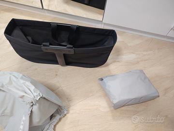 Passeggino gemellare Bugaboo Donkey . Il passegino grazie alla struttura telescopica modulabile si può utilizzare in opzione singolo o gemellare/ fratellare. Vendo completo di : 1 struttura modulare allungabile 2 navicelle con copertura 2 cappottine 2 moduli seduta passeggino 2 parapioggia impermeabili 1 borsa laterale utilizzabile nell'opzione passegino singolo. Bugaboo Donkey 5 è il passeggino super modulabile si può infatti convertire dalla versione Mono, adatta ad un solo bambino, nelle versioni Fratellare e Gemellare che permettono di ospitare due fratellini di età differenti o due gemelli. Perfetto per chi, dopo il primo bambino, ha l'intenzione di allargare la famiglia. Adatto dalla nascita fino a 22 Kg Larghezza della versione Mono di 60 cm, come nei modelli tradizionali Nella versione Fratellare/Gemellare la larghezza è di 74 cm, che permette di passare attraverso le porte di dimensione standard Peso del passeggino nella versione Mono: 12,3 kg; nella versione Gemellare/Fratellare 14.9 kg Chiusura compatta in un unico pezzo con seduta e navicella inclusa Seduta reclinabile fronte strada / fronte genitore e reclinabile in 3 posizioni fino alla posizione nanna. Maniglione regolabile in altezza (da 86 cm a 106 cm) Cinture Easy Click, che mantengono gli spallacci sollevati per facilitare l'inserimento del bambino Ampia cappottina XXL dotata di finestrella in rete e inserto traspirante per favorire la circolazione dell'aria nei mesi estivi Barra di protezione che permette l'apertura a "cancelletto" più pratica e semplice Cesta porta oggetti laterale, richiudibile con cerniera e con capienza di 10 Kg Ampio cestello portaggetti (portata Max 10 K g). Costo di spedizione orientativo, una volta concordata la vendita chiederò il costo esatto al corriere