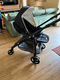Passeggino CAM da utilizzare fronte mamma o fronte strada, cappottina parasole regolabile, vano portaoggetti inferiore. Ovetto omologato per trasporto in auto con cappottina parasole regolabile. L’ovetto si può agganciare alla base a ruote togliendo il passeggino. È compreso anche il telo parapioggia.
