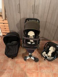 Vendo Trio Concord Neo in buone condizioni composto da passeggino con manubrio regolabile in altezza e ruote smontabili.