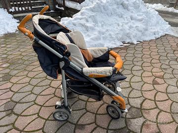 Passeggino leggero Chicco con schienale completamente reclinabile, cappottina, sacca porta oggetti e ovetto.