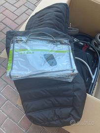 Ampio parasole multi-posizione con doppia finestra di ventilazione (filtro solare anti-UV 50+). + SACCO INVERNALE DELLA LINEA COMPATIBILE accessorio per l'inverno utilissimo per tenere al caldo il bimbo.