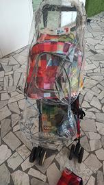 Passeggino dal tessuto in buone condizioni, da sistemare la spugna usurata vicino ai manici e il cavetto per abbassare lo schienale. Completo di borsa, copri gambe e telo anti pioggia.