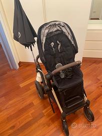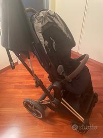 Passeggino elettrico Cybex e Priam colore Rose gold semi-nuovo usato per meno di un anno (acquistati quando la mia bambina aveva già tre anni, pertanto privo di ovetto) con barra paraurti Coya, parasole, copri gambe platinum imbottito, parapioggia Coya (mai usato, nuovo di zecca).