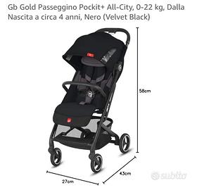 Passeggino Cybex, modello : Gb Gold Passeggino Pockit+ All-City, 0-22 kg, Nero (Velvet Black). Misure: 84L x 42l x 106H cm . Peso 7,5 kg. Buone condizioni