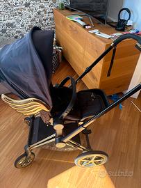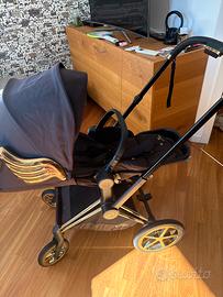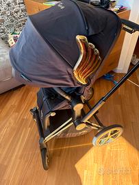 Vendo passeggino cybex limited edition Jeremy Scott, con ali, struttura e ruote dorate. Con doppia posizione per il bebè sia fronte strada sia fronte genitore, comprensivo di maniglione anticaduta e porta bicchiere.