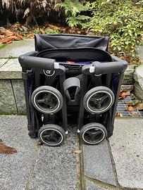 Passeggino GB Pockit ultra compatto e leggero. Chiuso ha forma regolare e dimensioni di una piccola borsa, ottimo per viaggi in aereo/treno o per auto con bagagliai piccoli. Tra i più compatti sul mercato. Schienale reclinabile e cinture regolabili. Varese città.
