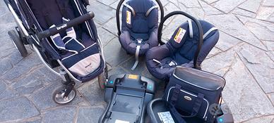 VENDO passeggino GEMELLARE o FRATELLARE marca BREVI, in ottime condizioni, usato pochissimo (come si vede dell'usura gomme). Completo di borsa portaoggetti, 2 basi per auto, 2 ovetti e 2 sedute.