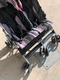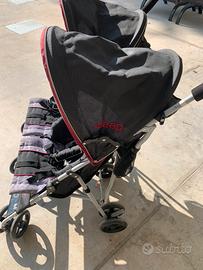 In ottime condizioni usato solo due mesi, con schenale completamente recrinabile, sacca in rete portaoggetti dietro ciascun schienale. Ruote piroettanti e leggero da spingere, si chiude con una mano.