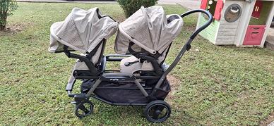 Vendo passeggino doppio in perfette condizioni. La struttura e compatibile con tutti gli ovetti Peg Perego. Ruote estraibili con la possibilità di girare le sedute a piacimento. Prezzo 300€