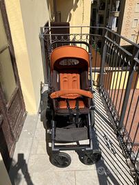 Passeggino e navicella con cinturine (per auto), marca Jané, modello Muum, colore arancione, usato ma in ottimo stato di conservazione. Il passeggino e la navicella possono essere incastrati sul medesimo telaio pieghevole, incluso ovviamente nell'offerta di vendita. Prezzo trattabile.