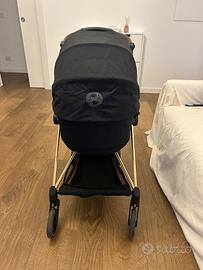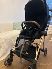 Carrozina e passeggino evolutivo Cybex MIOS Platinium nero con dettagli in rose gold. Il più compatto, leggero ed elegante della gamma del prestigioso marchio: adatto dagli zero ai 3 anni.