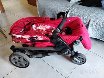 Vendo passeggino e navicella molto ampi e comodi.colore rosso. Struttura leggera ma alta e regolabile con maniglione. Poggiapiedi regolabile, riduttore per passeggino, schienale reclinabile. Ruote grandi e confortevoli anche nei terreni impervi. Richiudibile con passeggino. Vendo perché non entra nel mio ascensore. Senza ovetto per auto. Non spedisco. Ritiro a mano zona Roma est 00169