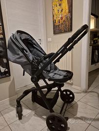 Passeggino: per bambini da 6 mesi a 15 kg (circa 3 anni), chiudibile a libro con seduta reversibile (fronte/strada - fronte/genitore) Capottina richiudibile e removibile, con finestrella osserva bimbo. Schienale Reclinabile a più posizioni. Imbragatura a 5 punti regolabile con protezioni pettorali. Ruote anteriori piroettanti con dispositivo di bloccaggio. Freno di stazionamento a pedale.