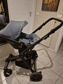 Seggiolino auto i-Size: utilizzabile da 40 a 85 cm, omologato da 0 a 13 kg. Si fissa facilmente al telaio con sistema di aggancio/sgancio. Dotato di capottina parasole regolabile e di riduttore interno primi mesi. Pratico maniglione per trasporto. Testato a Normativa Europea ECE R129/03