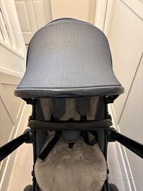 Ancora in ottime condizioni. Il cofano presenta graffi come mostrato in foto e sul lato, dovuti al contatto con i maniglioni. I graffi sul cofano potrebbero essere coperti con una bordatura. Completa di parapioggia. Borsa non inclusa. Colore chambray. Prezzo trattabile. Solo ritiro in loco.