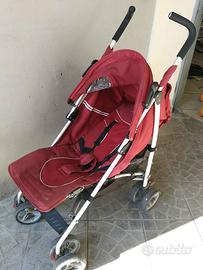 Passeggino estivo in alluminio con schienale regolabile, parapioggia, cinture di sicurezza regolabili, ruote anteriori libere nella rotazione, tessuto lavabile, richiudibile, molto resistente. Marca Bebèconfort modello Viva di colore rosso scuro.