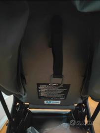 ruote outrider ammortizzate e tassellate, adatte a ogni tipo di terreno, e ai tessuti con protezione solare UPF 50+ con cerniere resistenti all'acqua. Si chiude facilmente in automatico con una sola mano, con chiusura a pacchetto self standing.