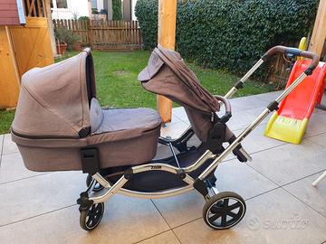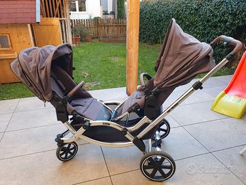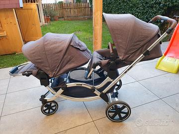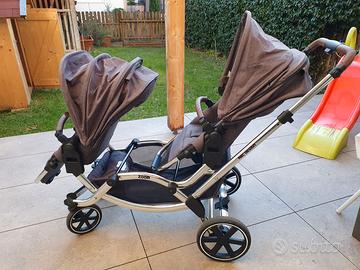 Vendo passeggino gemellare ABC Zoom, in ottime condizioni, con 1 navicella e 2 sedute sportive. Offre molteplici possibilità di posizione per 2 bambini. Condizioni eccellenti.