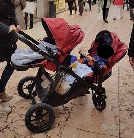 Passeggino singolo o fratellare per figli vicini di età. City Select in versione gemellare presenta due sedute esattamente identiche per dimensioni e caratteristiche. La seconda seduta viene agganciata tramite appositi adattatori inclusi nel kit.