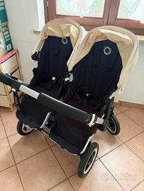 Passeggino gemellare comprensivo di 2 navicelle, 2 seggiolini, 2 parapioggia e posto per la spesa.