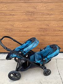 Passeggino gemellare City Select Baby Jogger usato in cindizioni discrete, ruote posteriori ok mentre ruote anteriori molto usurate e eventualmente da cambiare.