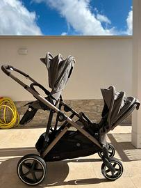 Passeggino doppio o gemellare Cybex modello Gazelle S, con doppia seduta e due ovetti. Colore grigio. Credo sia uno dei migliori marchi per quanto riguarda i gemellari. Comodo, maneggevole nonostante porti due bambini. Acquistato a dicembre 2022 per i miei piccoli.
