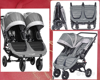Vendo passeggino RUOTE GRANDI baby jogger city GT gemellare o per fratelli di età diverse. GT ha una ruota solamente ma più grande rispetto al city mormale con doppia ruota ma meno maneggevole. Molto maneggevole e leggero da spingere. Si può utilizzare dalla nascita avendo le sedute reclinabili del tutto. Le capottine si possono aprire e chiudere in 3 scatti diversi e da aperte hanno delle "finestre" apposite per poter vedere il bimbo da sopra. Si chiude a libro e occupa pochissimo spazio anche nel bagagliaio della macchina.