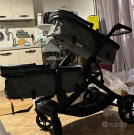 Vendo passeggino gemellare/fratellare nuovo mai usato, imballato! Completo di un telaio di ricambio ricevuto per sbaglio dal venditore, ed aquistato adattatori per ovetti universali,pagati 40€. Sarebbe doppia culla, doppio passeggino, e volendo doppio ovetto, con gli apositi adattatori, gli ovetti non ce l'ho ma aquistabili apparte. Prezzo trattabile!