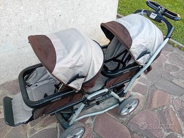 Passeggino gemellare modello duette piroet Peg Perego, in buone condizioni, possibilità di montaggio seggiolino uno verso l'altro/ direzione strada o direzione genitori, possibilità di montaggio seggiolino e una carrozzina (praticamente nuova) in caso di bambini di età differente. servito da sterzo, comodissimo, si guida con una mano. Consegna con corredo di 2 copertine gambe coordinate e 2 copri seduta beige. Ulizzabile dalla nascita.