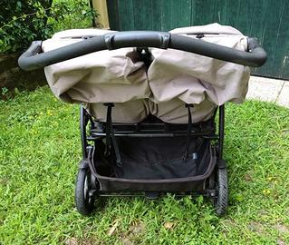 Passeggino studiato per gemelli o fratelli vicini d' età. Comodissimo e versatile si guida facilmente anche con una sola mano grazie al maniglione ergonomico orientabile in varie posizioni.