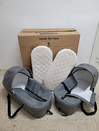 Vendo passeggino gemellare Peg Perego Book for Two, usato ma in buone condizioni generali (presenti normali segni di usura) e perfettamente funzionante. Vendo in kit con 2 navicelle, materassi, copertura anti pioggia!