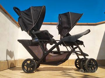 Vendo un passeggino fratellare/gemellare "Stadium Duo" della Graco di colore nero/grigio, ideale per chi ha gemelli o bambini di età ravvicinata.