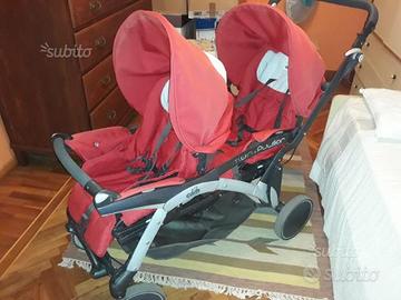 Passeggino gemellare con possibilità di girare le sedute entrambe fronte mamma oppure entrambi fronte strada o uno di fronte all'altro! Da chiuso ci sta comodamente nel bagagliaio di una station wagon! Aggiungo 2 alzate per ovetto(non in dotazione quest'ultimo ma ne ho uno da potervi vendere a parte, sempre della cam). Leva per freno e leva per ruote a 360 gradi o per bloccarle dritte... Passeggino davvero ottimo per 2 gemelli o figli nati molto vicini come i nostri... prezzo leggermente trattabile! COMPLETO DI PARAPIOGGIA E BORSE