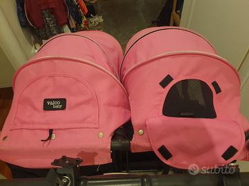 Vendo passeggino gemellare Valco, ideale per due bambini. Colore nero con cappottine rosa.