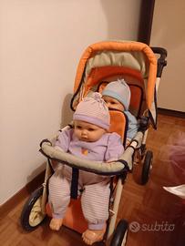 Passeggino regolabile in altezza, i bambolotti misurano 50 cm pertanto il Passeggino è grande e può essere usato per tanto tempo. Schiacciando il petto dei bambolotto, emetto o dei versi. È tenuto benissimo.