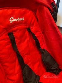passeggino pieghevole Giordani Racer rosso 8 ruote girevoli completo di capottina antipioggia ed istruzioni. Ritiro a Bergamo e/o paesi limitrofi.