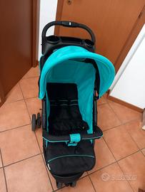 Passeggino Hauck 3 ruote colore nero e azzurro, in ottime condizioni, portata massima 22 kg. Comodo manico che può essere utilizzato anche per riporre bottiglie o biberon. Dotato di capiente vano portaoggetti sotto alla seduta. Chiuso occupa poco spazio, leggero e maneggevole.