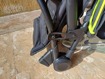 Comfort anche per bimbi grandi: Spaziosa seduta reclinabile e confortevole con schienale regolabile (45 x 34 cm) e capottina estensibile; portata fino a 22 kg + cestino porta oggetti.