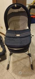 Vendo passeggino Inglesina originale, colore blu navy con rifiniture bianche, completo di seduta imbottita con cinture di sicurezza, struttura leggera e robusta, e ruote doppie per una guida fluida e stabile.