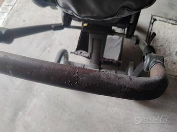Passeggino usato, sfruttato parecchio ma ruote messe nuove qualche mese fa. Ha bisogno solo di una veloce lavata. Perfettamente funzionante ma per via del sole che ha preso è un po' sbiadito. Maniglia in similpelle consumata, come si vede dalla foto. Venduto su internet nuovo a 380 euro. Incluso nel prezzo la sacca invernale che copre le gambe, come nuova. Copertura originale per pioggia. Ombrellino parasole incluso. Se non volete spendere 380 euro e non vi interessa farvi vedere con un passeggino nuovo, potete spenderne 50 e avere tutto quello che fa quello da 380 euro. Io usavo questo passeggino per pattinare mentre portavo in giro il bimbo. Ha ruote abbastanza grandi, ottimo per il mio scopo. Se interessati, ho anche la pedana posteriore con 30 euro in più. Prezzi ASSOLUTAMENTE non trattabili.