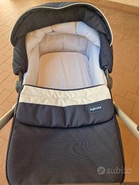 Vendo Trio Trilogy marca INGLESINA, colore blu denim, comprende: - Telaio Trilogy - Seduta passeggino - Carrozzina Navicella con copertina paragambe - Ovetto (seggiolino auto)