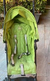 Il passeggino è usato con alcuni segni di usura ma funzionante. La retina porta oggetti inferiore ha qualche piccolo buco. Ha anche la capottina superiore.