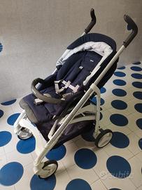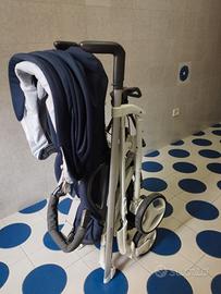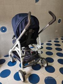 passeggino Inglesina Trilogy blu in buone condizioni, perfeamente funzionante e molto robusto, facile da usare anche con una mano per apertura e chiusura. presenta alcune imperfezioni dovute all'utilizzo