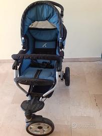 Vendo passeggino marca JANE’ modello Slalom Trio a tre ruote con freno, completo di culla e ovetto, colore blu e in buono stato d’uso.