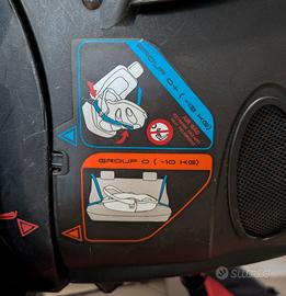 Completo di navicella (utilizzabile come seggiolino per auto) e passeggino con ruote grandi rimovibili.