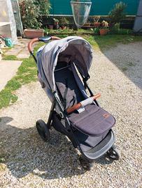 Usato ma in ottime condizioni. Non è scolorito nella seduta o nella cappottina né spellato nelle zone in pelle. NON è un passeggino leggero, ma è robusto e maneggevole alla guida completo di parapioggia