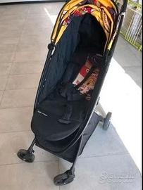 Passeggino , leggero e maneggevole. Usato, con normali segni di usura, nessun pezzo rotto. Maniglione unito. Grande cestino portaoggetti. Cinture a 5 punti. Per i viaggi in auto le ruote sono estraibili, per un ingombro minore del passeggino. Per i tragitti a piedi, invece, le 4 ruote sono dotate di sospensioni, lo schienale è reclinabile in più posizioni, ed il bambino può riposare sdraiato. Cappottina estendibile. Dimensioni Aperto: Profondità 83 cm x Larghezza 54,5 cm x Altezza 104 cm. Chiuso: Profondità 28 cm x Larghezza 54,5 cm x Altezza 70 cm. Peso 6,3 kg (telaio + seduta).