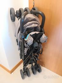 Dotato di cinture di sicurezza a 5 punti, capottina estensibile, ruote piroettanti con sistema di blocco e morbide sospensioni.