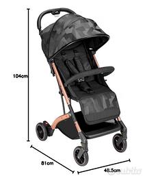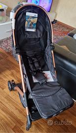 Vendo come nuovo, passeggino ultra leggero (6,8kg) e ultra compatto Cam Compass 2.0 in tessuto nero jaquard e telaio rose gold. Si apre e si chiude con una mano, ha molti accessori (copri gambe integrato, zanzariera e sacca per il trasporto), cappottina estendibile, regolazione del poggiapiedi e diventa completamente reclinabile (da 0 a 22 kg ) e completamente apribile x la stagione estiva. Salvo qualche micro riga sul telaio e perfetto. Si trasporta da chiuso come un trolley, con maniglia telescopica. 150€ non trattabili.