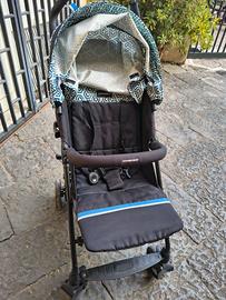 passeggino leggero e compatto di Foppapedretti con telaio in alluminio, che si chiude a ombrello occupando poco spazio. Si può utilizzare dalla nascita fino a 3 anni circa (bambini fino a 15 kg). Lo schienale è regolabile in multi posizioni, il bracciolo di protezione si apre a cancelletto, ha ruote anteriori piroettanti con dispositivo per bloccarne il movimento e ruote posteriori con freno. La capottina ha l’apertura osserva bimbo.